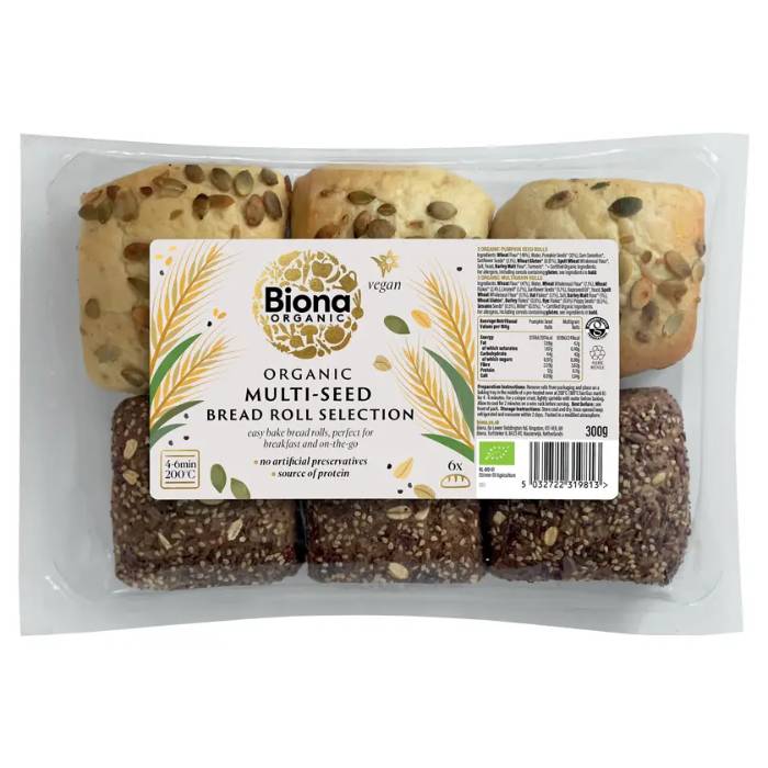 Biona Organic Multi-Seed Bread Roll, 300g | Deliciously wholesome rolls packed with nutritious seeds.