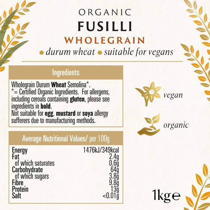 Wholegrain Durum Wheat Semolina*, Water * = Certified Organic Ingredients