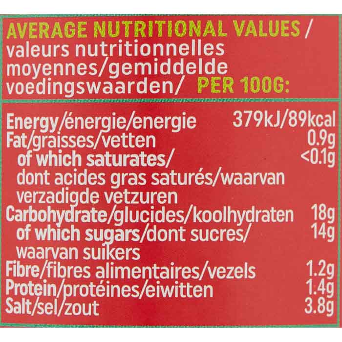 Water, Vinegar*, Raw Cane Sugar*, Molasses*, Balsamic Vinegar* (Red Wine Vinegar*, Grape Juice Concentrate*), Tamarinds*, Tamari* (Soya Beans*, Sea Salt), Onions*, Sea Salt, Blackcurrant Syrup*, Garlic*, Oranges*, Chilli*, Red Pepper*, Ginger*, Cardamon*, Coriander Leaves*, Cinnamon*, Basil*, Parsley*, Coriander*, Nutmeg*, Black Pepper*, Cayenne Pepper*, Pimento*