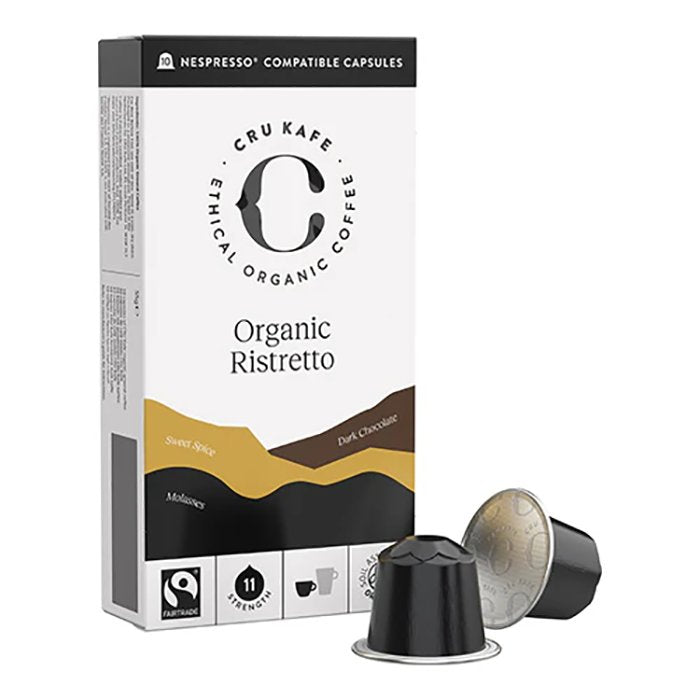 CRU Kafe Organic FairTrade Coffee Pods (78.8g) offer rich, ethically sourced coffee in a convenient pod format. Made with 100% organic and FairTrade-certified beans, these pods deliver a smooth, full-bodied flavour while ensuring sustainability and fair wages for farmers. Compatible with Nespresso® machines.