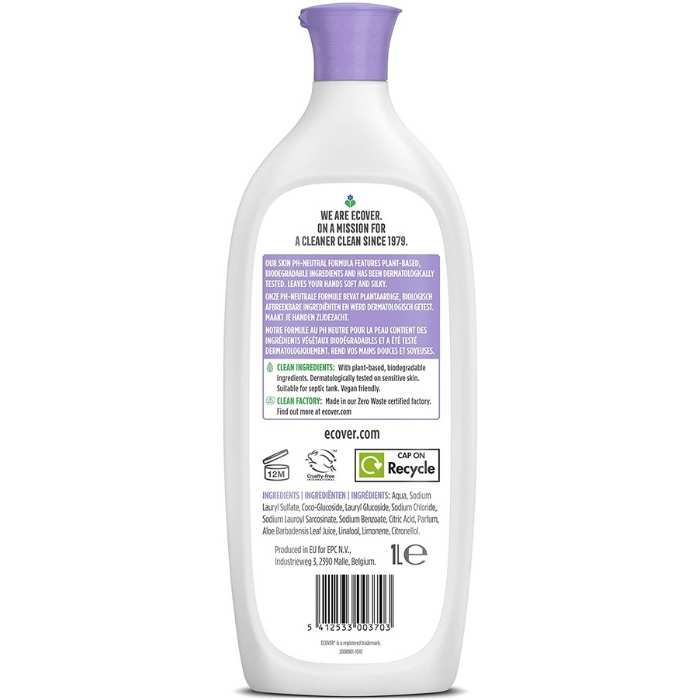 Ecover's Hand Wash in Lavender & Aloe Vera fragrance combines plant-based ingredients for a gentle yet effective cleansing experience. The soothing blend of lavender and aloe vera leaves hands feeling refreshed and moisturized. This eco-friendly formula reflects Ecover's commitment to sustainable, cruelty-free products, promoting a healthier planet and lifestyle.