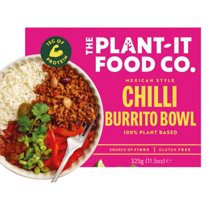 Plant-It Chilli Burrito Bowl plant-based meal with spicy beans, rice, and veggies, ready in minutes for a quick, vegan-friendly bite.
