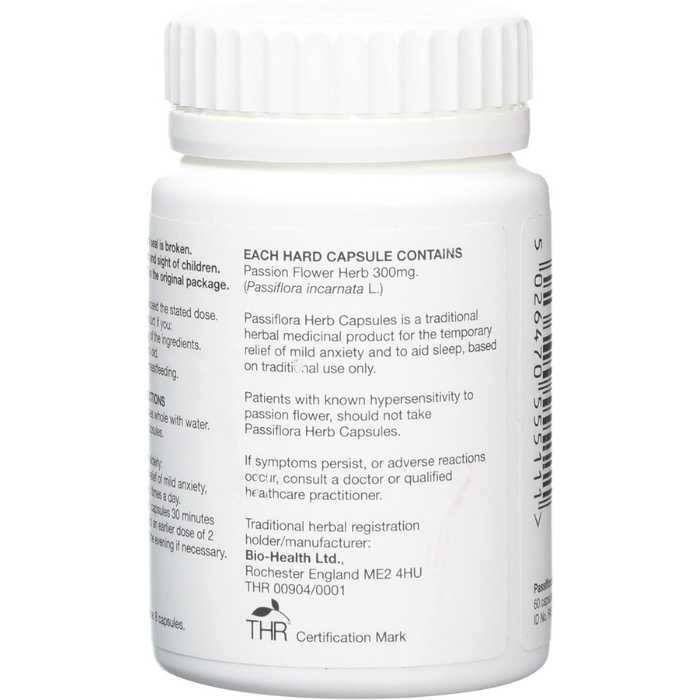 Bio-Health - Passiflora Herb Capsules 300mg, 60 Capsules back