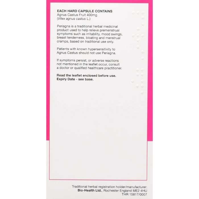 The herbal medicine Periagna® Agnus Castus (Vitex agnus castus L) is a traditional way of treating and relieving the unpleasant symptoms of premenstrual tension or premenstrual stress. If your symptoms are particularly bad see a GP for advice.
