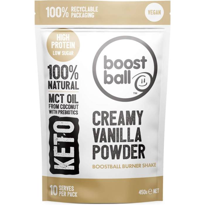 Boostball Creamy Vanilla Protein Powder: High in protein, low sugar, vegan-friendly. Perfect for shakes or baking. Smooth vanilla taste