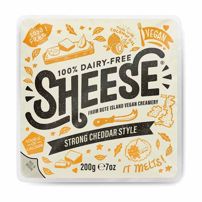 The original vegan cheese alternative created by Bute Island Foods in 1988, this Strong Cheddar Style Sheese Wedge is full of mature flavour and it even melts! With an ever-improving texture, this Sheese can be sliced, shredded, or grated but remains creamy and cheesy.