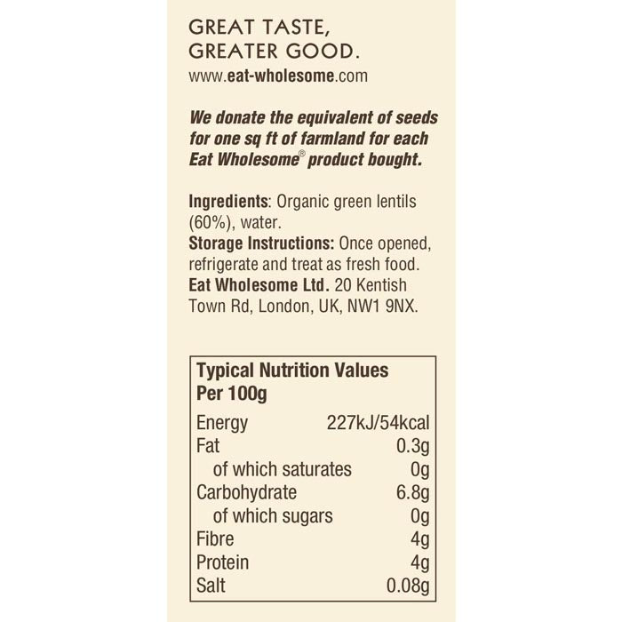 How much protein and fibre does Eat Wholesome’s Organic Green Lentils contain?
