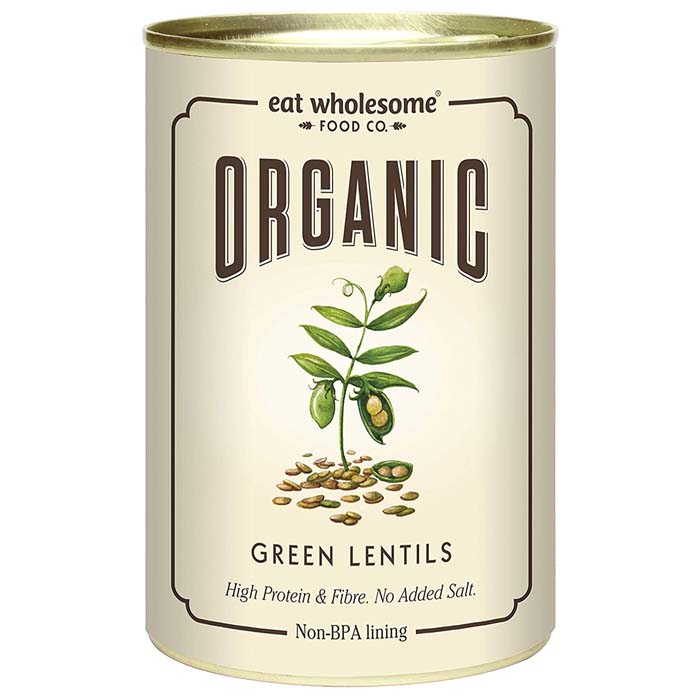 These Organic Green Lentils from Eat Wholesome contain only the lentils and water with no added salt. They are also free from gluten, soy and palm oil and are packed in a BPA-free can.