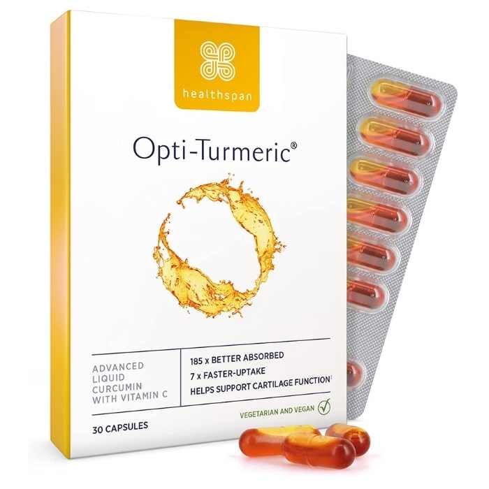 Healthspan Opti-Turmeric capsules contain “Opti-turmeric”. Curcumin is the active ingredient in turmeric, and regular curcumin isn’t water soluble. This means our bodies don’t absorb it well. Healthspan’s innovative Opti-Turmeric brings you the amazing benefits of turmeric, in an easily-absorbable capsule form.