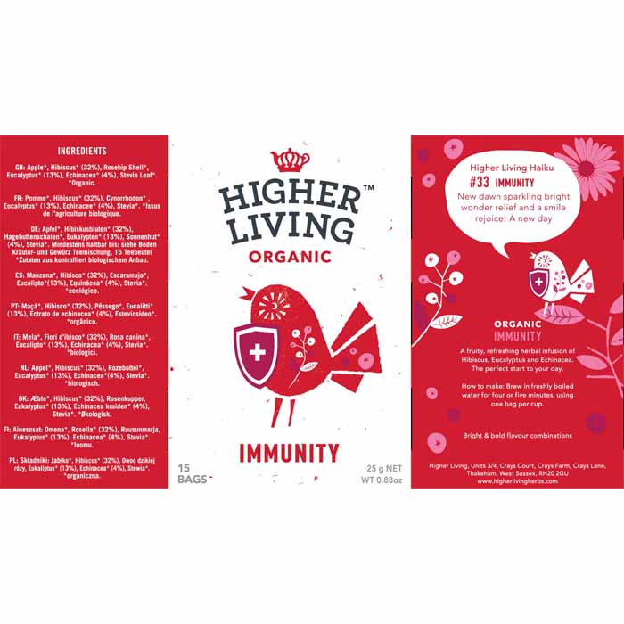Higher Living - Organic Immunity Tea, 15 Bags Pack of 4