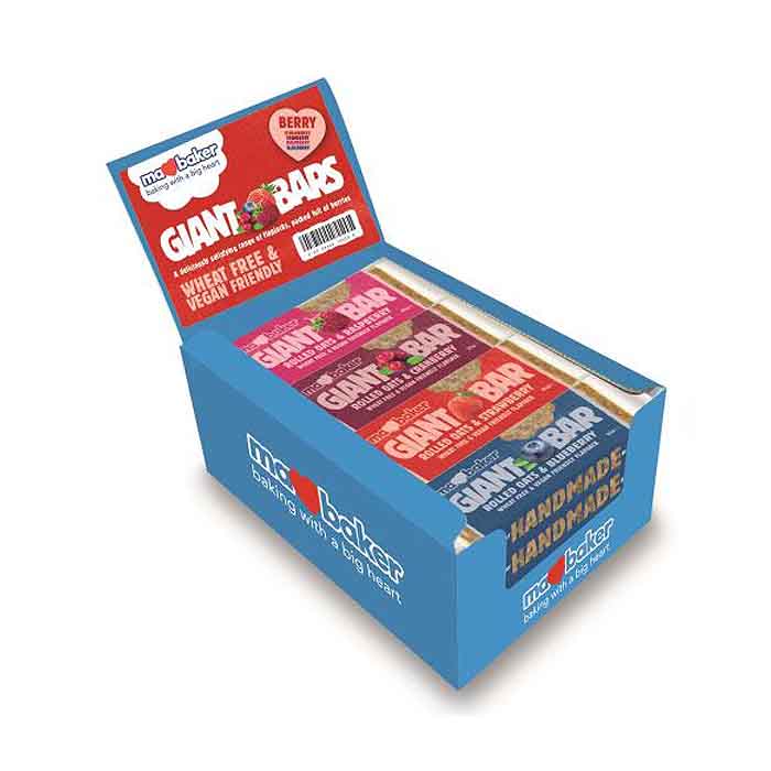 Fancy a little snack? Whether at home, the office, or on the trail, you can feast on any one of Ma Baker’s Giant Bars. They’re available in a ton of flavours so you can definitely find one to eat every day of the week! Available in Apple, Apricot, Cherry, Banana, Pecan, Pistachio, Coconut, Raspberry, and Blueberry flavours in a single-bar or 20-bar pack