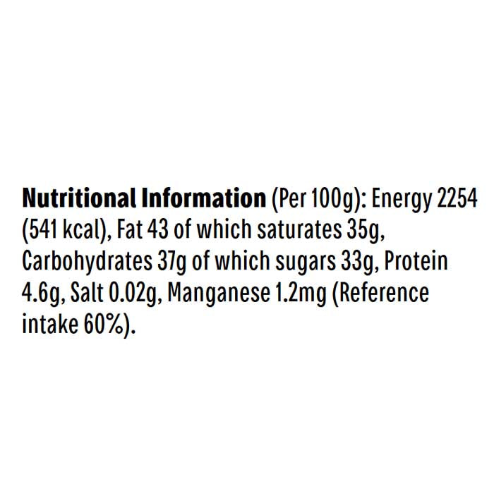 Coconut sugar*, Creamed coconut* (28.14%), Unroasted Cacao*♦, Cocoa butter*♦, Coconut flour*, Vanilla extract*(0.45%).