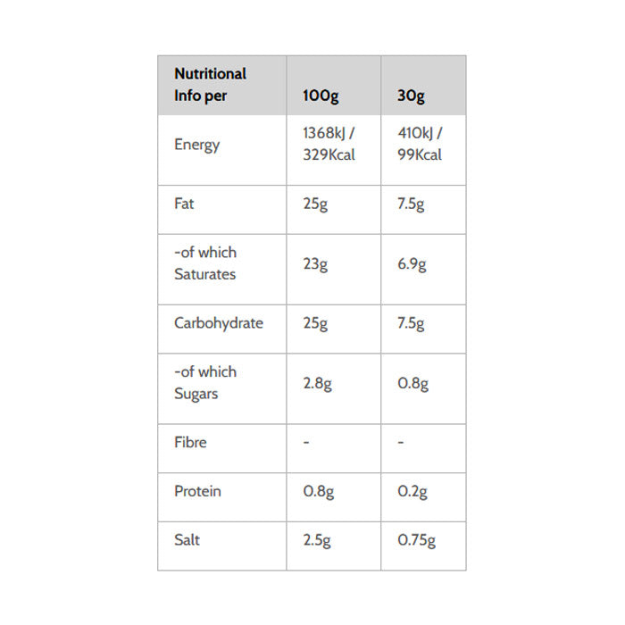 Water, Coconut Oil (25%), Modified Starch, Starch, Sea Salt, Dextrose, Calcium Phosphate, Lentil Protein, Spices, Green & Red Dried Peppers, Chilies Cayenne Pepper, Brown Sugar, Dehydrated Vegetables (Tomato, Garlic, Onion), Herbs, Cumin, Flavourings, Olive Extract, Vitamin B12.